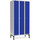 Helsvejst Sonesson garderobeskab i stål, 3 x 300 mm med lige tag og 1 rum i højden. Kabinet i lys grå RAL 7035 og blå dør RAL 5010 i pulverlakeret stål. Leveres med cylinderlås færdig monteret i dørene. Indretning med hattehylde og bøjlestang med 2 stk. dobbeltkroge. Vore skabe har naturlig ventilation med perforeret bund og luftespalter i frontlis