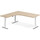 DNA hæve-sænkebord som leveres med eg bordplade og hvidt understel. Bordpladen har størrelse 1800 x 1800 mm.Kontrolpanelet har et display som viser aktuel bordhøjde. Den har tre programmerbare arbejdshøjder og det er muligt at aktivere en funktion med tidspåmindelse, om at du bør skifte mellem sidde og stå ved bordet. Med dette bord kan du let just