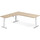 DNA hæve-sænkebord som leveres med eg bordplade og hvidt understel. Bordpladen har størrelse 2000 x 2000 mm.Kontrolpanelet har et display som viser aktuel bordhøjde. Den har tre programmerbare arbejdshøjder og det er muligt at aktivere en funktion med tidspåmindelse, om at du bør skifte mellem sidde og stå ved bordet. Med dette bord kan du let just