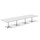 Konferencebord i DNA møbelserie, med lys grå rektangulær bordplade på alugråt understel. Længde x dybde er 4400 x 1200 mm.Som en helt naturlig del af møbelserien DNA, indgår også en omfattende serie konferenceborde. Dette er flotte og prisgunstige mødeborde som ikke går på akkord med hverken design eller kvalitet. Bordpladen er 25 mm, lys grå lamin