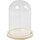 Rund klokke af plexiglas med løs træfod, som er klar til at blive fyldt med kreative udstillinger