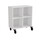 Reol Stig med kabinet i hvid laminat, 2 rum i bredden, 2 rum i højden. Med hjul og ryg.