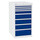 Værksted indretning, individuelt tilpasset til proffesionelt brug! Skuffesektion til montering under bord 500 med 88 % udtræk. Farve: Kabinet RAL 9002, lys grå og skuffefront RAL 5005, blå. Indeholder: 3 stk. skuffe 50 mm, 1 stk. skuffe 100 mm, 3 stk. skuffer 150 mm, 1 stk. skuffe 200 mm. Maksimalbelastning er 100 kg pr. skuffe. Værksted indretning