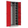 Soldaterskab med lige tag. Lys grå kabinet, RAL 7035 med røde dobbeltdøre, RAL 3020. Indretning med hattehylde, bøjlestang med 2 stk. ankerkroge, 8 stk. hyldeplan. Dørene har 4 stk. små skuffer, kroge og håndklædeholder. Færdigmonterede beslag for hængelås.(bxdxh) 680 x 600 x 1900 mm.
